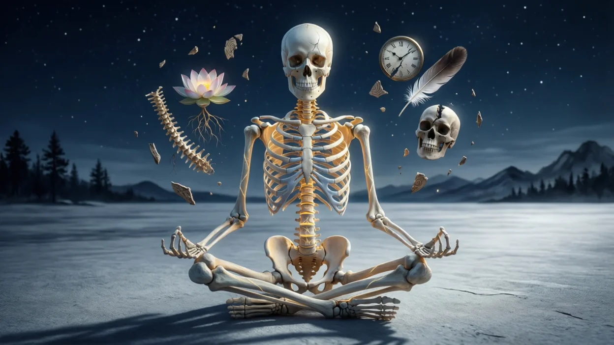 Skeleton symbolism invites fearless honesty and spiritual maturity.