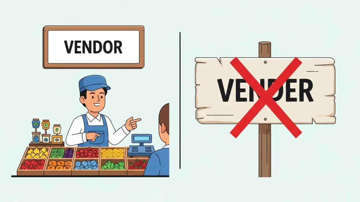 👉 Vender = Old word (do not use)